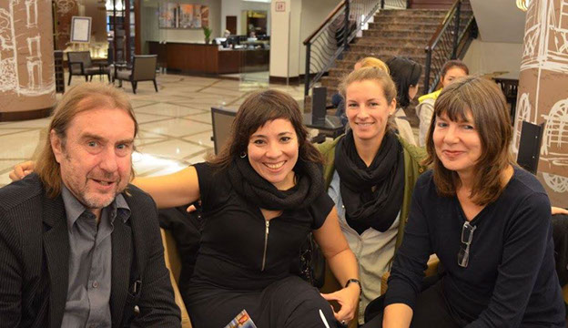 v.l.n.r.: Ute Evers (Generalkonsulat der Bolivarischen Republik Venezuela), Christiane Zietzer (Film Commission Hessen), Beate Collin (Beratungsstelle Film, Stadt Frankfurt a. M.), Klaus-Peter Roth (Filmforum Höchst), Ralph Förg (Filmhaus Frankfurt) und Regisseurin Claudia Pinto.