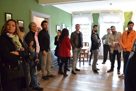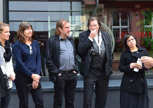 Eine bunte Gruppe mit Regisseuren, Schauspielern, Journalisten, Produzenten, Filmkritikern und Drehbuchautoren im Goethehaus!